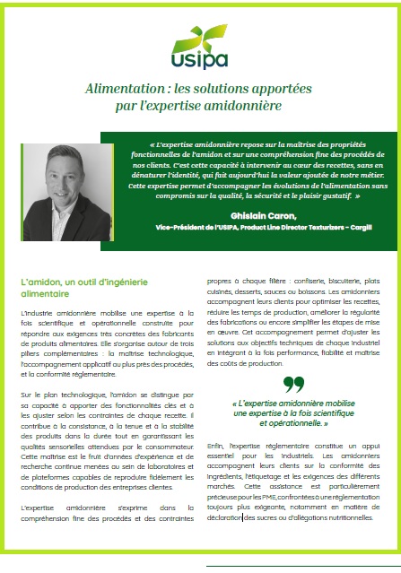 Par Ghislain CARON, Vice-Président de l’USIPA, Product line Director Texturizers chez CARGILL